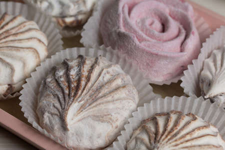 A gentle marshmallows. Candy bird's milk. Traditional russian zephyr, Beautiful dessert.