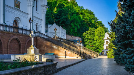 Svyatogorsk, Ukraine 07.16.2020. Assumption Cathedral on the territory of the Svyatogorsk Lavra in Ukraine, on a sunny summer morning