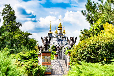 Kyiv, Ukraine 07.10. Public park near the Honka house in the Mezhyhirya Residence, Kyiv, Ukraine, on a sunny summer day