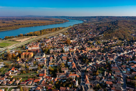 Sremski Karlovci in Autumn, drone aerial perspective