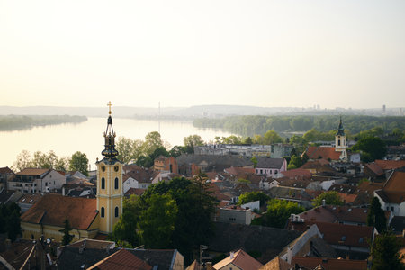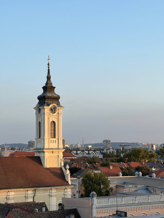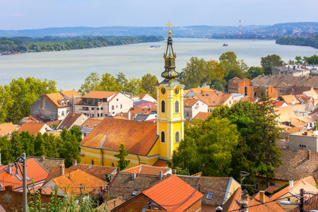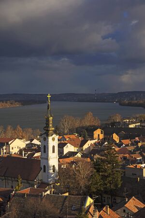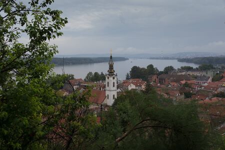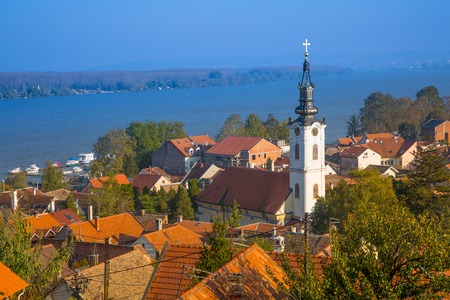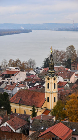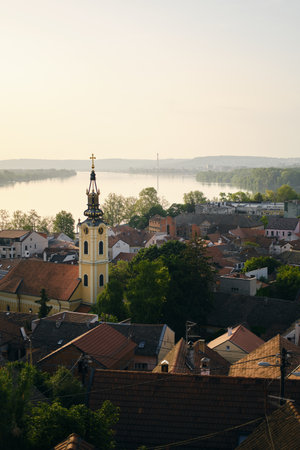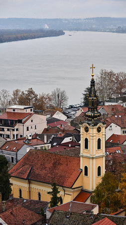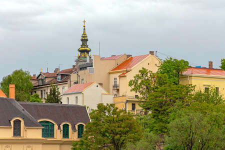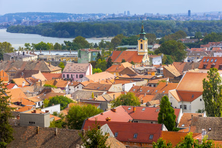 Panoramic view of Zemun, with church tower in Belgrade, Republic of Serbia