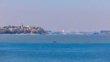 View of Zemun, river Danube and city of Belgrade in background.