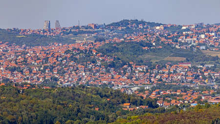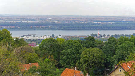 Panoramic view from the Gardos hill of Zemun municipality of Belgrade, capital of Serbia, with Danube river in the background.