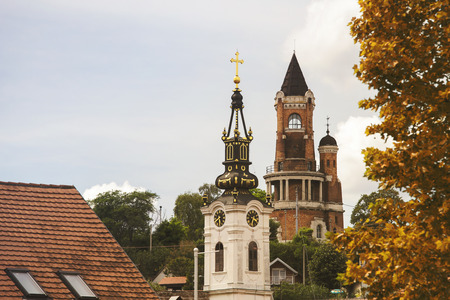 Gardos Tower and orthodox church with autumn colors in Zemun,Serbia