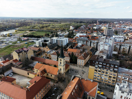 Oradea - St. Nicholas Cathedral viewed from above, Romania.