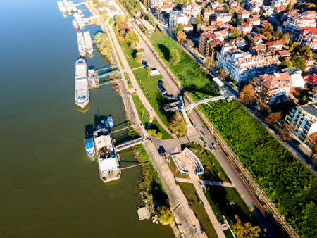 Amazing Aerial view of Danube River and City of Ruse, Bulgaria