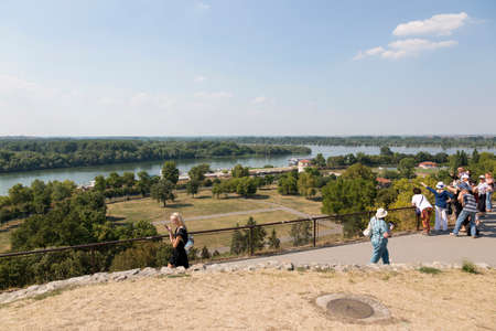 Belgrade, Serbia - July 31, 2017: Tourists and Panoramic view of the Danube and Belgrade from the height of the Belgrade Fortress