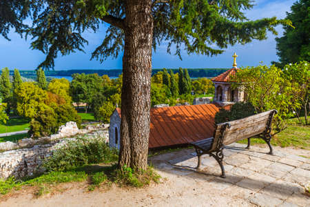 Kalemegdan Fortress park and Sava river panorama view in Belgrade, Serbia
