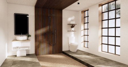 The Bath and toilet on bathroom japanese wabi sabi style .3D rendering