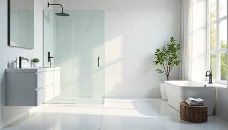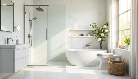 Bright and Modern Bathroom Design with Luxurious White Fixtures