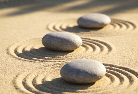 zen garden meditation stone in the sand with light and shadow, nature background