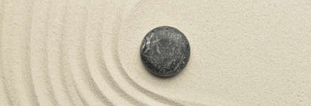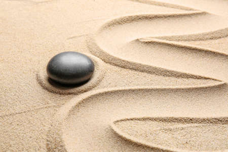 zen meditation stone in sand, concept for purity harmony and spirituality, spa wellness and yoga background, harmony