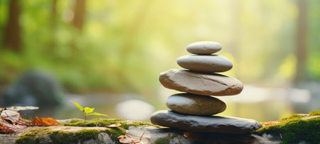 Tranquil stacked stones in a natural environment a close up for meditation and zen practices
