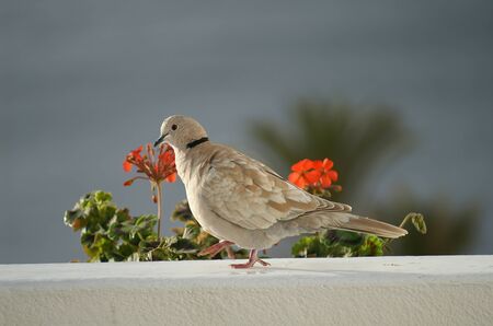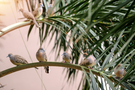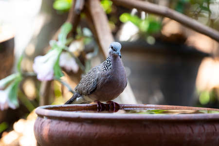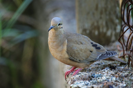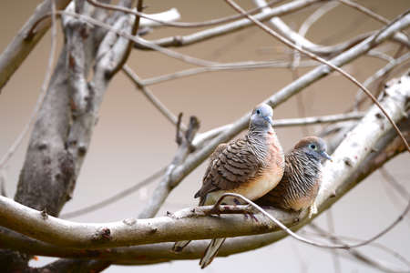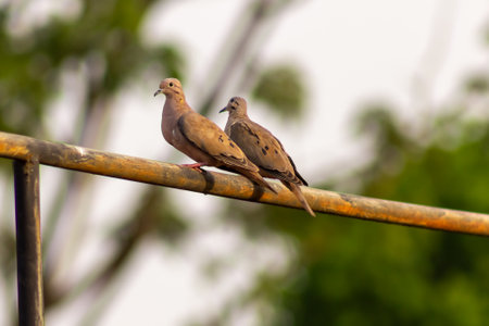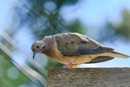 Wild Zebra Dove or Barred Doves cleaning itself on a fence.
