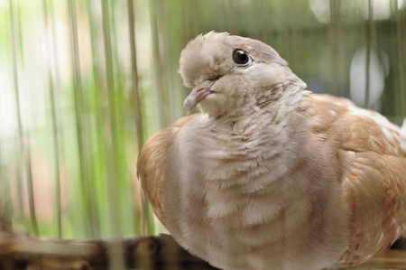 Wild brown pigeon sitting on a wooden visor in Egypt