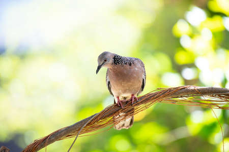 Zebra Dove (Geopelia striata), bird, on the wire with green natural background