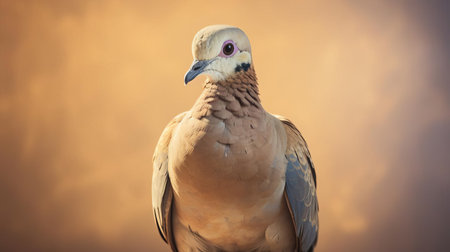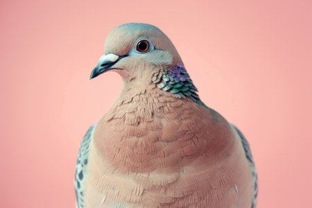 the mourning dove, a gentle bird with a mournful call, is beautifully captured in this stunning passport-sized photo, showcasing its soft gray-brown plumage and black spot on its neck, taken with a 50mm lens, highlighting its delicate features in exquisite detail. ai generated