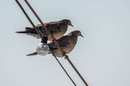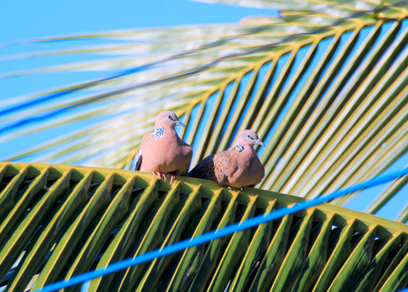 Wild Zebra Dove or Barred Doves cleaning itself on a fence.