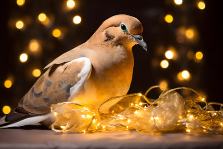 A dove in a Christmas setup. Studio portrait, winter festive season template. Generative AI