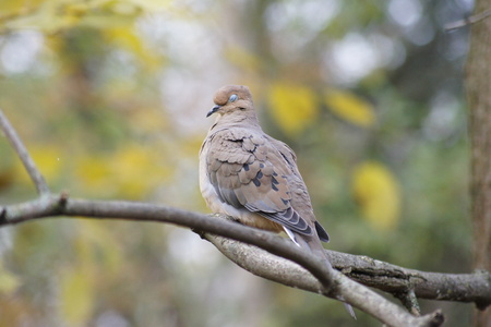 Pretty turtledove perched on a branch in a protected park in Quebec, Canada