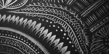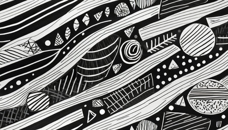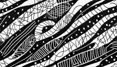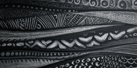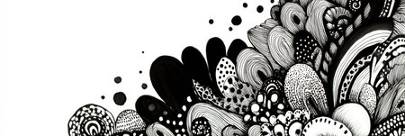 Hand-drawn patterns showcase intricate designs and textures in black and white artwork