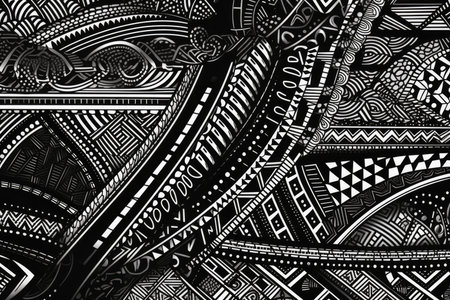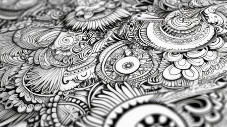 An AI generated illustration of an abstract black and white background of a detailed, intricate doodle art piece