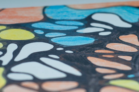 Close-up of a colorful abstract drawing being created with markers on paper, showcasing the artist's intricate work and creative process