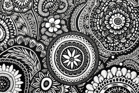 Explore a mesmerizing intricate black and white pattern filled with detailed swirls and floral designs, perfect for various creative projects and art-inspired backgrounds.