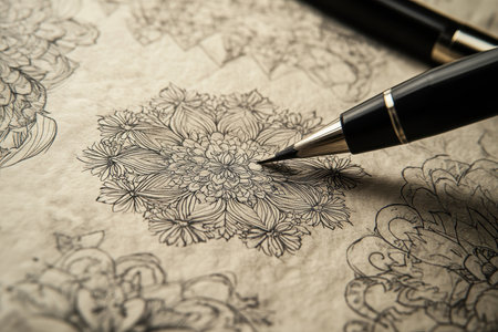 Discover a captivating image of detailed mandala art being created with a fine pen, showcasing intricate patterns on paper, perfect for creative inspiration and artistic projects.