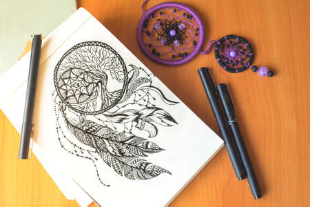 Bishkek, Kyrgyzstan - January 19, 2018: Painting concept. Drawing of amulets.