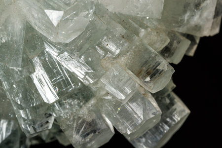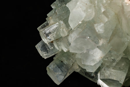 Macro stone Apophyllite mineral on black background close up