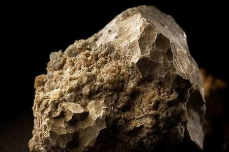 Kaolin on isolated black background, is an inorganic mineral, chemically inert