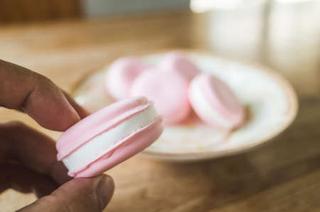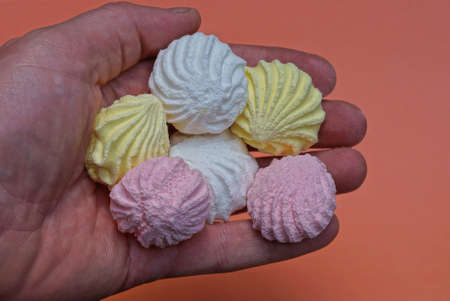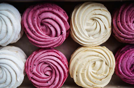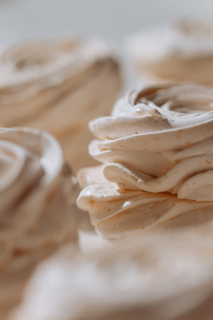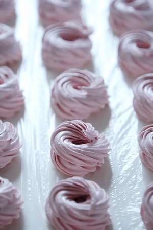 Marshmallows - meringue cookies made from egg whites, selective focus, close-up