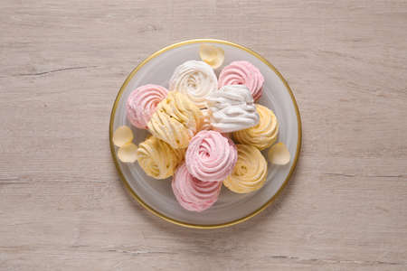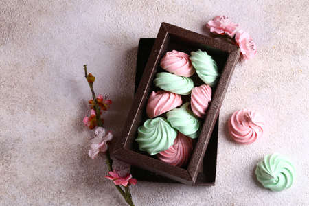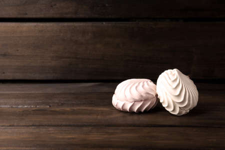 Gentle homemade marshmallow on a wooden background. Health food. Delicious breakfast, low in calories.