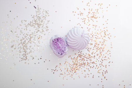 Homemade lavender zephyr arranged beautifully on a light background, highlighting its delicate texture and pastel hue, ideal for dessert presentations and culinary creativity