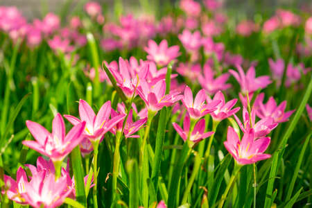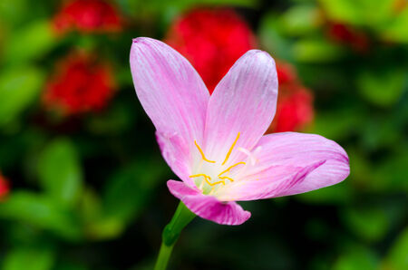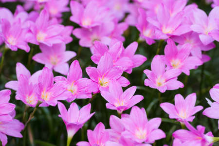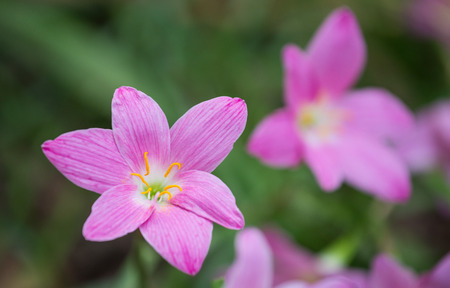 The Pink Rain Lily Flower blooming in The Field