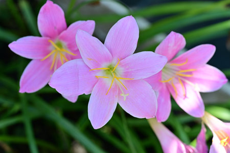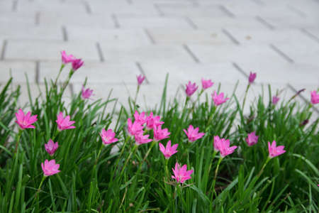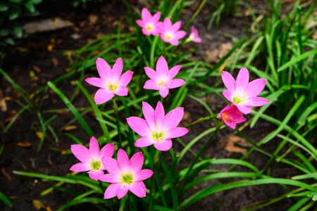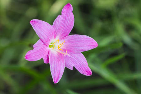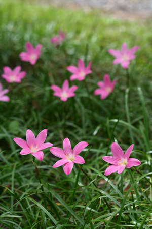 Pink Zephyranthes Lily flower in a garden.