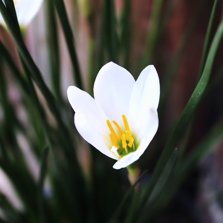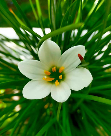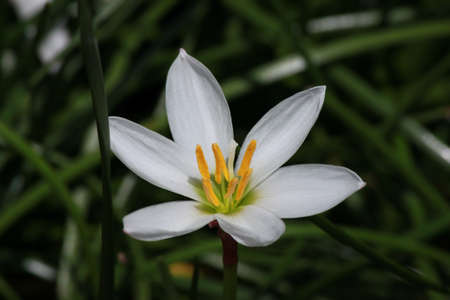 White Zephyranthes flower plant from a garden