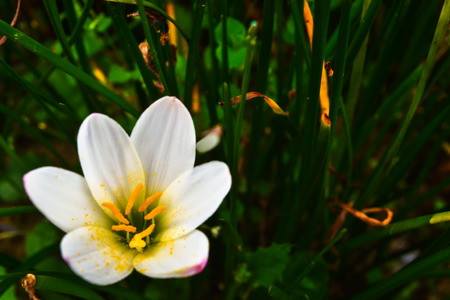 Zephyranthes or Rain Lily in garden.