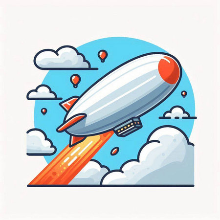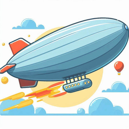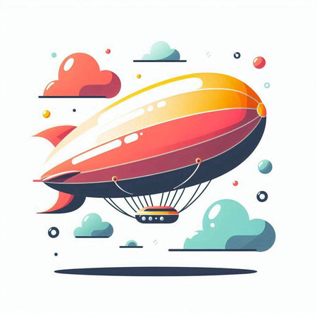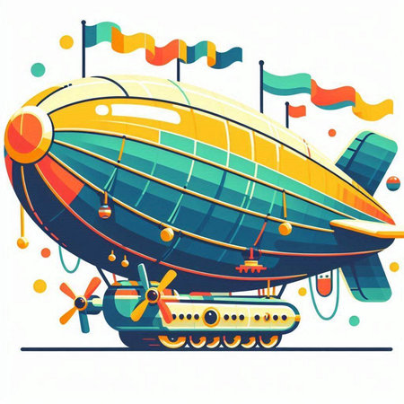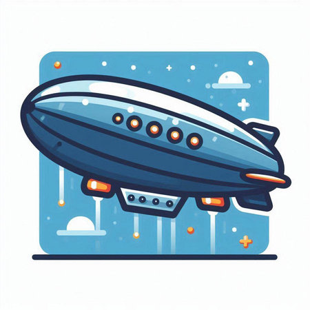 Illustration of airship in flight. Vector illustration of flying object.