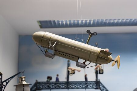 3d illustration of an old airship in a room with windows
