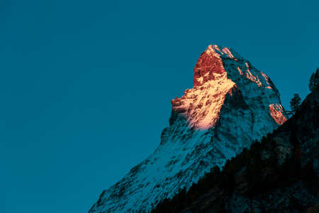 Matterhorn mountain peak at sunrise, Zermatt, Switzerland