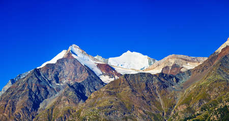 Panoramic view of the Valais Alps, Monte Rosa and Gorner Glacier, Switzerland.