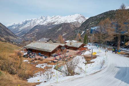 Cityscape Scenery View of Zermatt City, Switzerland. Swiss Village Culture and Architecture Along The Alpine. Beautiful Landscape Old Town With Mountain Alps of Zermatt City. Europe Travel/Vacation