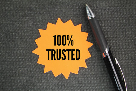 pens and colored paper stars with the words 100% trusted. Quality Assurance Check certified. business trust concept