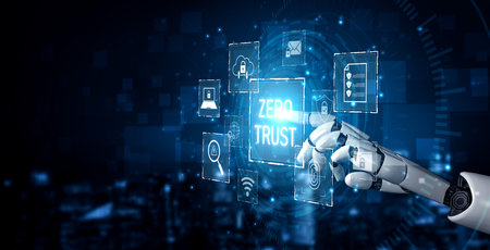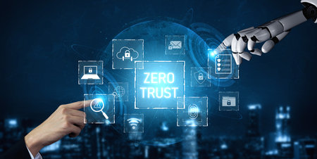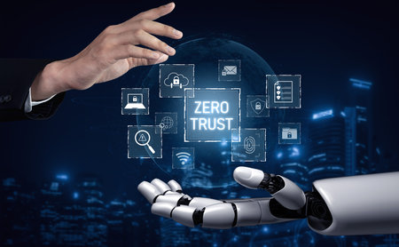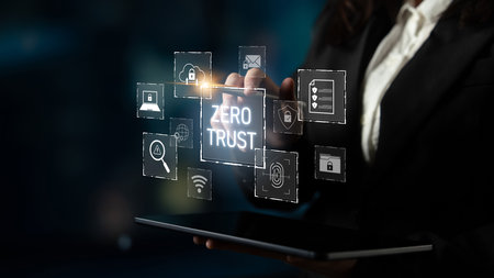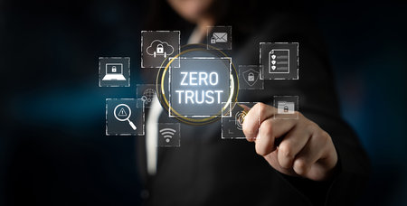 Zero trust security concept, Businessmen with virtual zero trust icon for business information security network. Zero trust security for network Data business information