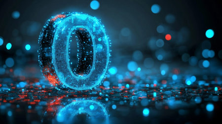 Glowing Digital 3D Number Zero on a Futuristic Abstract Background, Technology Concept.