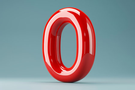 This impressive 3D render features a glossy red zero on a subtle blue background, showcasing modern design with vibrant colors that create an engaging visual experience that captures attention