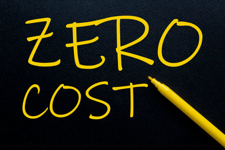 Eyeglasses and alphabet letters with text ZERO COST. Copy space.