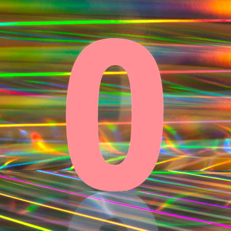 Number zero on abstract multicolored holographic background. Disco lights style.